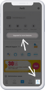 Step 1. Open the eWeLink APP, select Perfil and tap Upgrade for more features