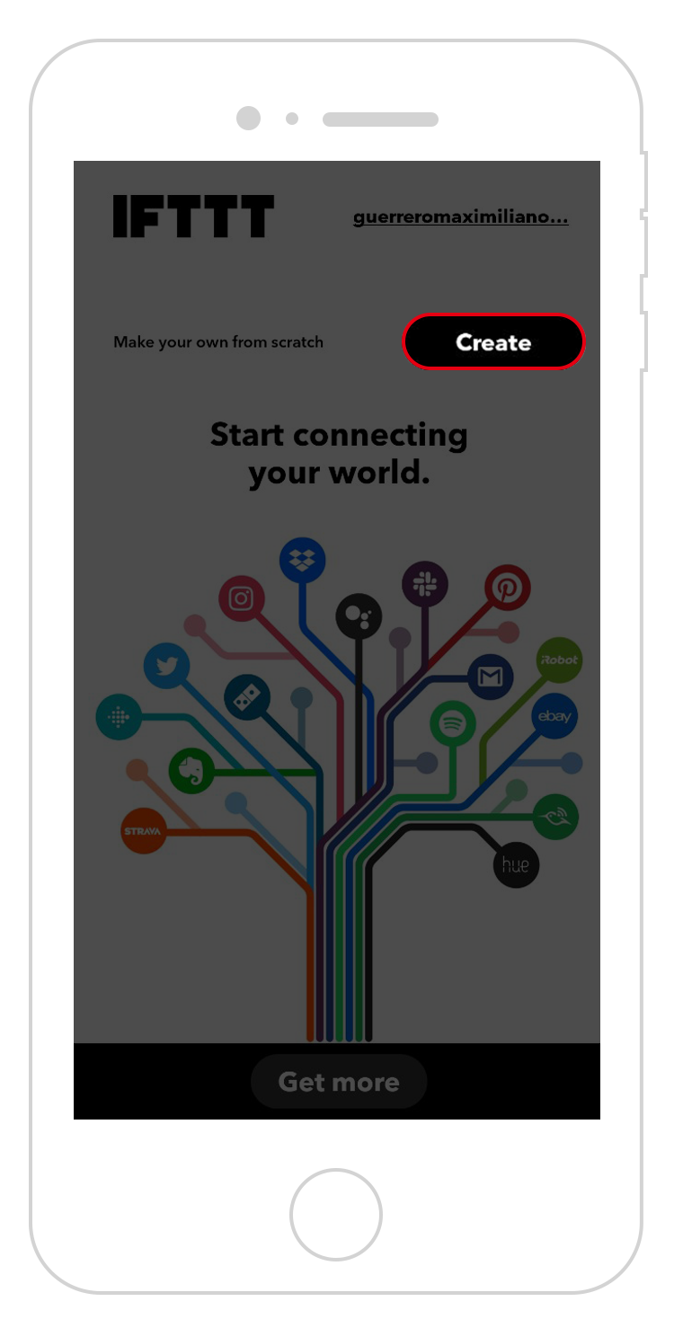 - Open IFTTT app and tap the create button on the top right corner on the page.