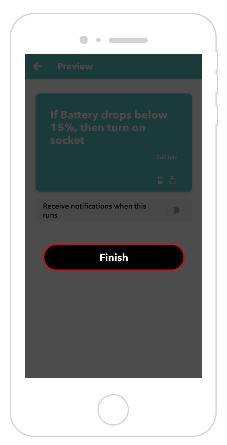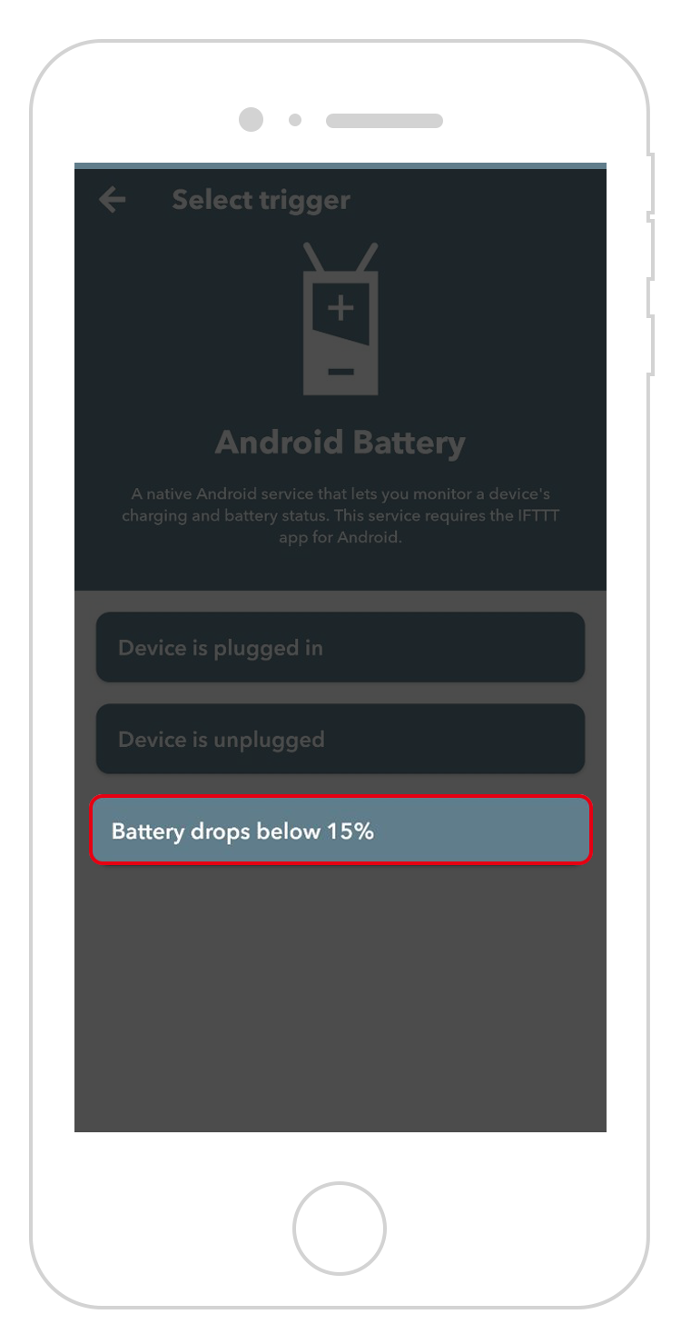 - Select Battery drops below 15% as the trigger.
