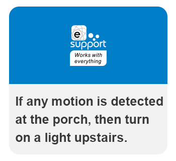 #3 Pretend you are home when you are not, to scare away unexpected visitors. If any motion is detected at the porch, then turn on a light upstairs.