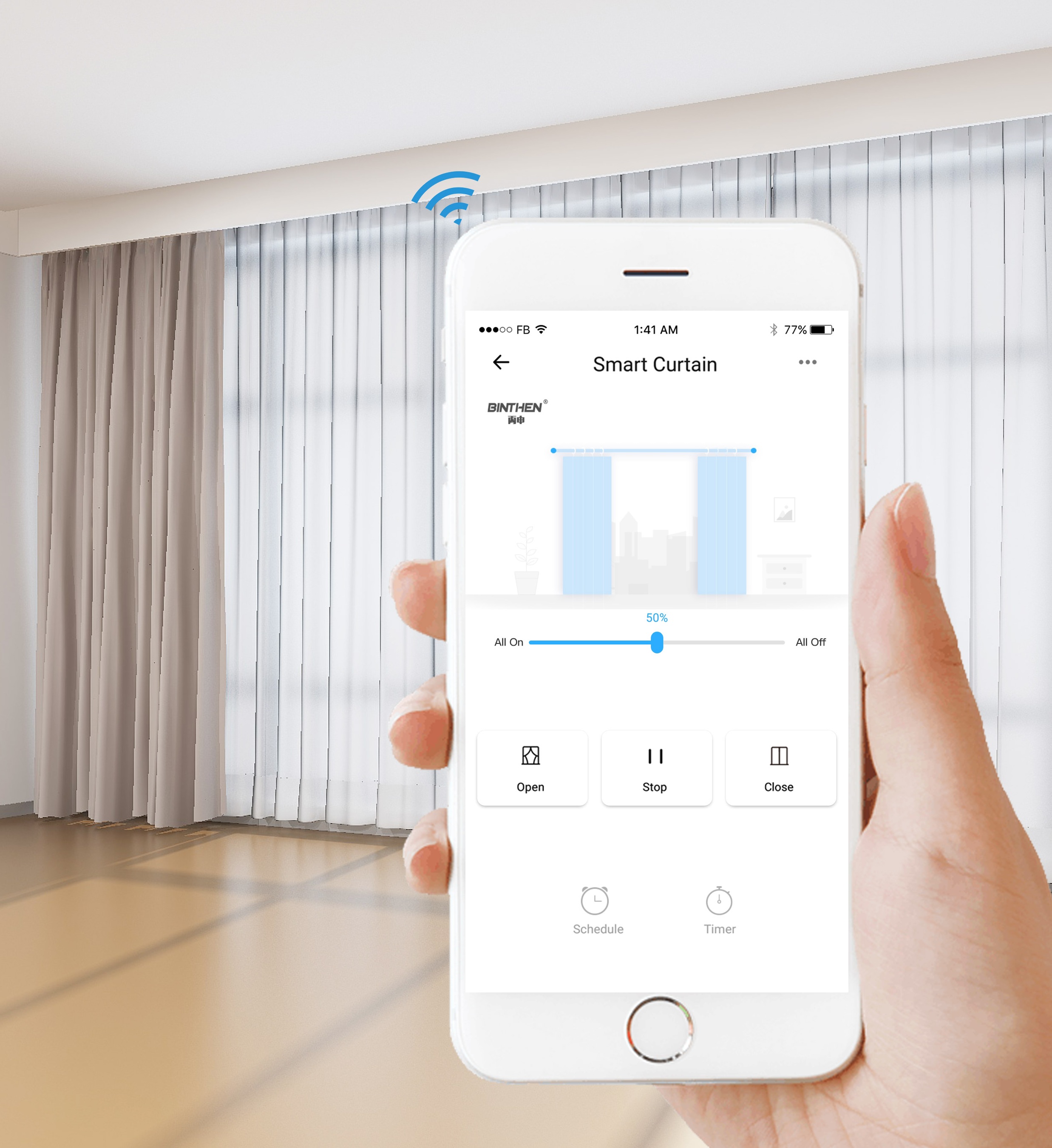 Make your regular curtain smart by installing an electric motor to it. Set a schedule to let sunshine in every morning when the sun rises.
